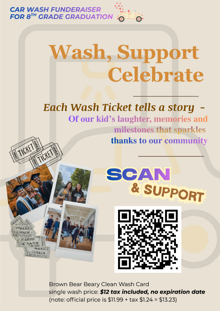 Please visit the PTSA website to purchase via Brown Bear Car Wash Fundraising or scan QR code above to donate.Every ticket keeps your car shining, and helps make our kids’ graduation unforgettable - talk about double the joy!