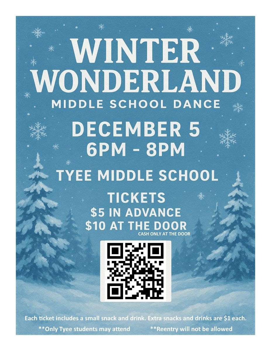 Come hang out with friends at the Winter Wonderland Dance Friday, December 5th from 6pm-8pm in the main gym!!